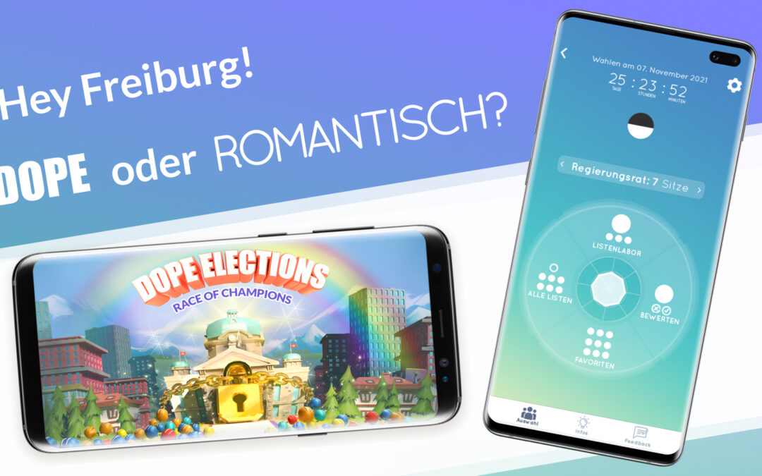 Es ist soweit! Für die Wahlen in Freiburg haben wir zwei Wahlapps entwickelt: Mit der CH+App und Dope Elections kannst du die Kandidierenden einfach kennenlernen und vergleichen.