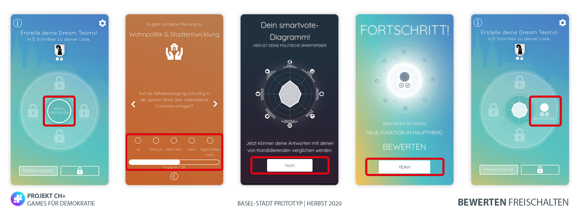 Du hast jetzt alle Funktionen freigeschaltet. Um das Freischaltungssytstem intuitiver zu gestalten, und um die einzelnen Funktionen zu verbessern, sind wir auf deine Rückmeldungen in der Abschlussumfrage angewiesen. Dazu wirst du nach den Wahlen per Mail eine Einladung erhalten. Wir freuen uns auf dein Feedback!